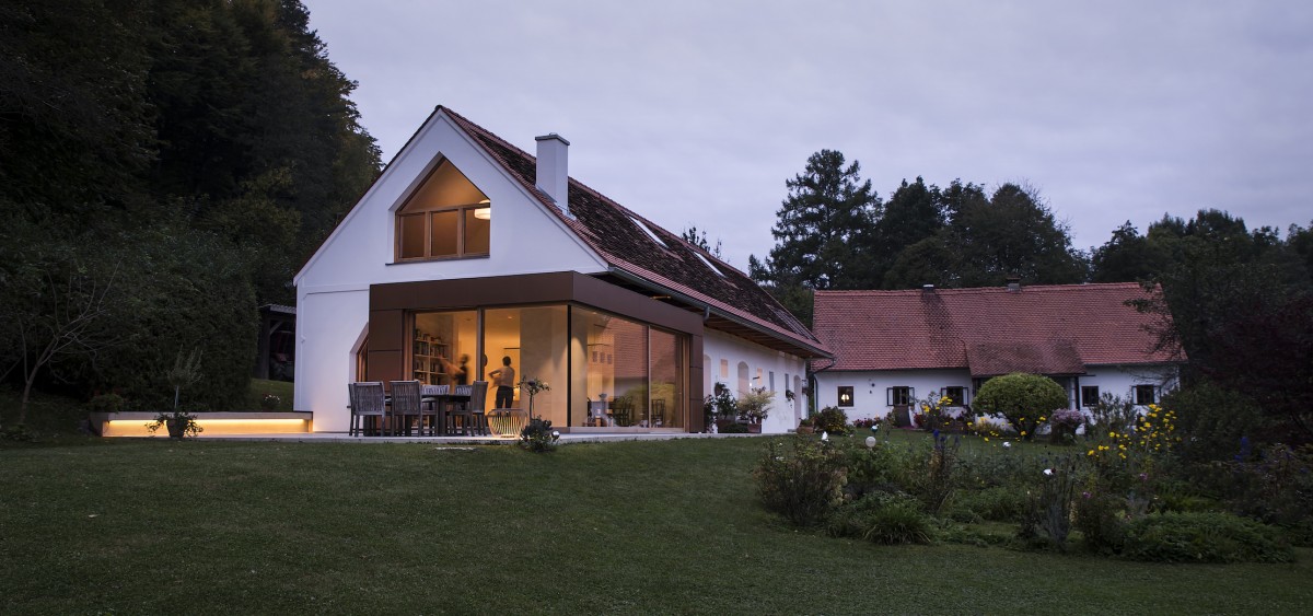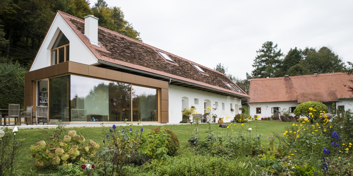 Der ehemalige landwirtschaftliche Betrieb aus dem 19. Jahrhundert, bestehend aus Wohnhaus, Stallgebäude und Kellerstöckl stellt ein baukulturell bemerkenswertes Ensemble dar. Für die 2. und mittlerweile 3. Generation der Bewohner wurde das Stallgebäude zu einem modernen Wohngebäude umgenutzt. In typischer Freilandlage wurden die bestehenden Kubaturen, unter Verwendung der historischen Bauteile weitgehend erhalten und sorgsam neu interpretiert. Die Aussenanlagen, wie der typische Bauerngarten und vorhandene Teich gliedern die Gesamtanlage. Durch die Stellung der Gebäude zueinander haben die Haushaltsgenerationen einerseits Kontakt zueinander, andererseits aber auch ihre großzügigen privaten Räume.